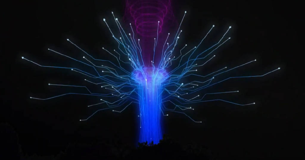 本次“太空針?biāo)睙艄庑銓⑻摂M燈光、投影和特殊效果疊加在太空針?biāo)捌渲車奶炜?,帶來一場魔幻的AR燈光秀。