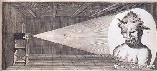 17世紀(jì),Christian Huygens和Athanasius Kircher發(fā)明了“魔法幻燈”,通過蠟燭將鏡頭上的特制內(nèi)容投射到熒光屏上,這就是最早的投影機(jī)。
