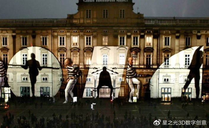 將舞蹈演員的運(yùn)動(dòng)運(yùn)用于建筑立面的動(dòng)態(tài)投射,產(chǎn)生了一種新奇而又驚人的視覺效果。