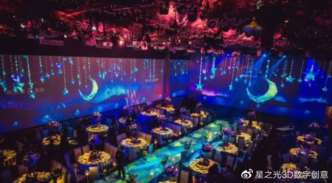 270度立體影像是利用投影技術(shù)和三維動畫技術(shù),利用宴會廳墻壁作為投射媒介,實現(xiàn)了宴會大廳的三維動態(tài)三維影像。三維影像在全息宴會大廳中是一個靈活多變的空間,能夠滿足各種需要。