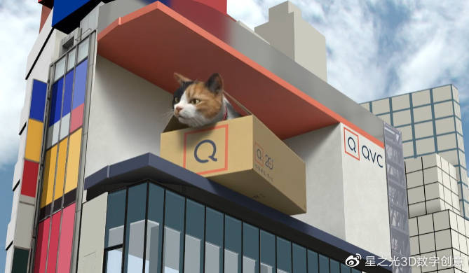 沒有一只貓能抗拒紙箱!QVC 20周年慶,電視商城贈送一只紙盒。三花貓?zhí)匠鲱^,好奇的擺弄著 logo,和這個品牌的互動度,簡直是逆天了。