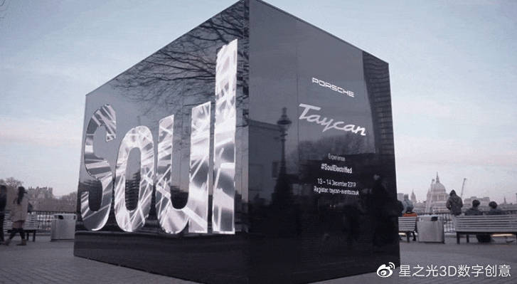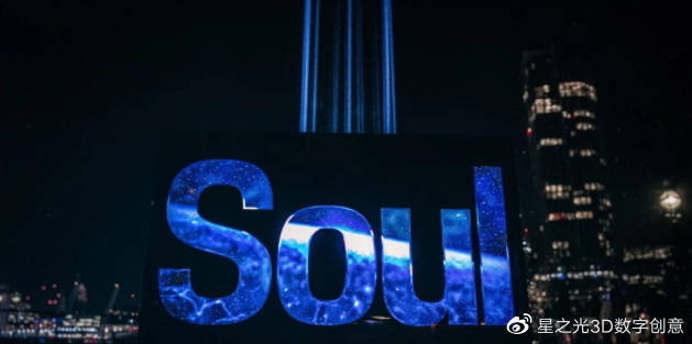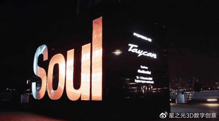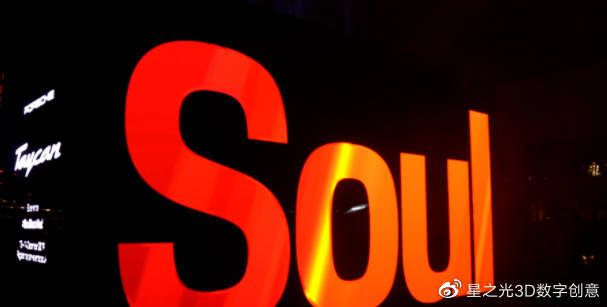 “ Soul”一詞的正面是鏡面鏤空結構配合播放動態(tài)視頻的LED屏幕。