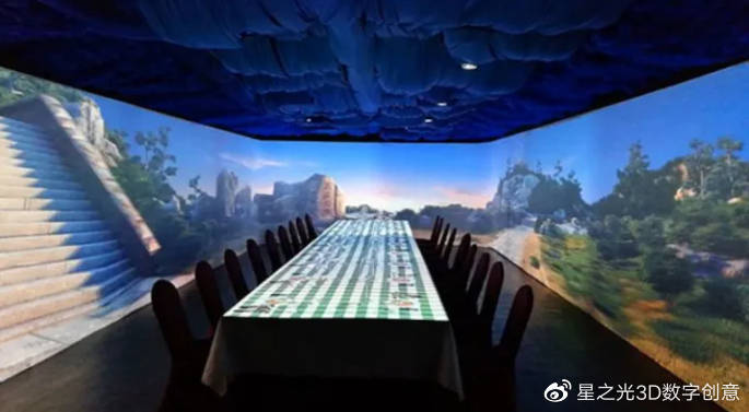 全息光影餐廳巧妙融合場(chǎng)景氛圍、動(dòng)作捕捉,餐廳包廂、大廳、地面等場(chǎng)景,宛如將餐廳變成了一個(gè)虛擬的世界,讓人有一種置身于夢(mèng)幻世界中的感覺(jué)。