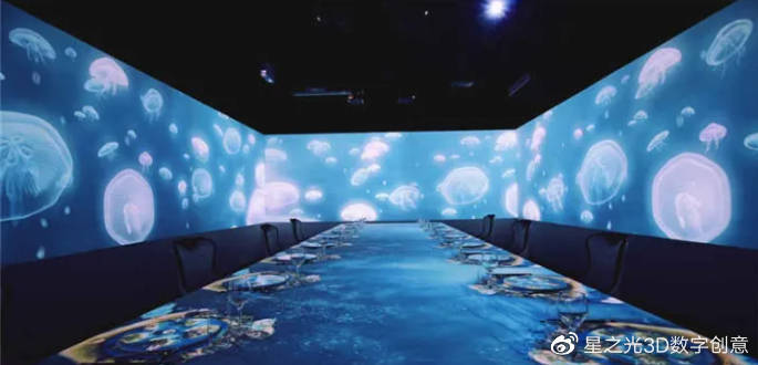 5D全息餐廳與傳統(tǒng)的餐廳空間不同,5D全息投影餐廳采用了交互投影技術(shù),將原本靜止的餐飲空間變成了一個(gè)動(dòng)態(tài)的視覺(jué),讓消費(fèi)者在不同的場(chǎng)景中,感受到了一種沉浸式的交互式體驗(yàn)。