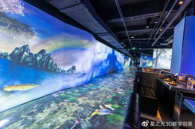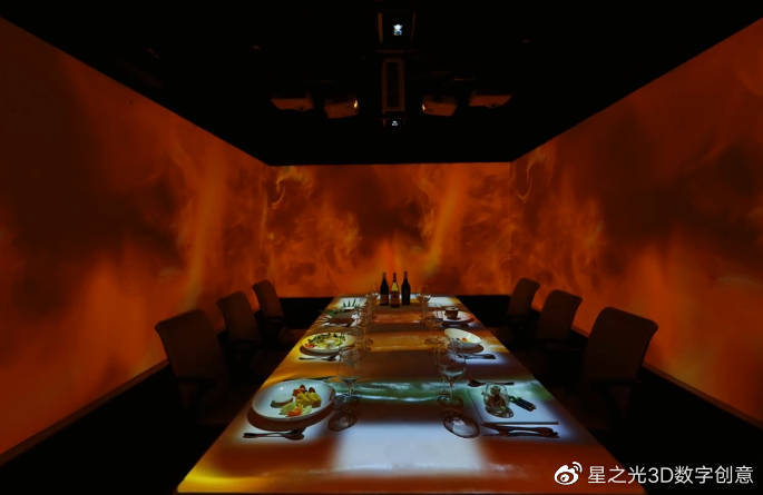 全息3D投影餐廳,是以建筑投影、智能交互為技術(shù)的全新感官餐廳,將傳統(tǒng)的味覺體驗升華為觸覺、視覺、味覺等多方面的體驗,讓消費者在品嘗美味的同時,也可以沉浸在投影的世界中,與各種智能交互,感受到高科技帶來的新鮮感。