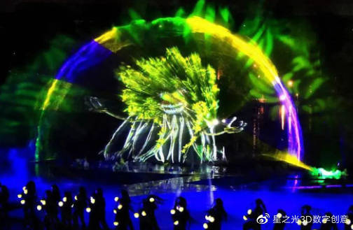 水幕投影,如其名稱所示,將圖像投射到水簾上或者水幕上。水幕投影的載體是真正的水體。